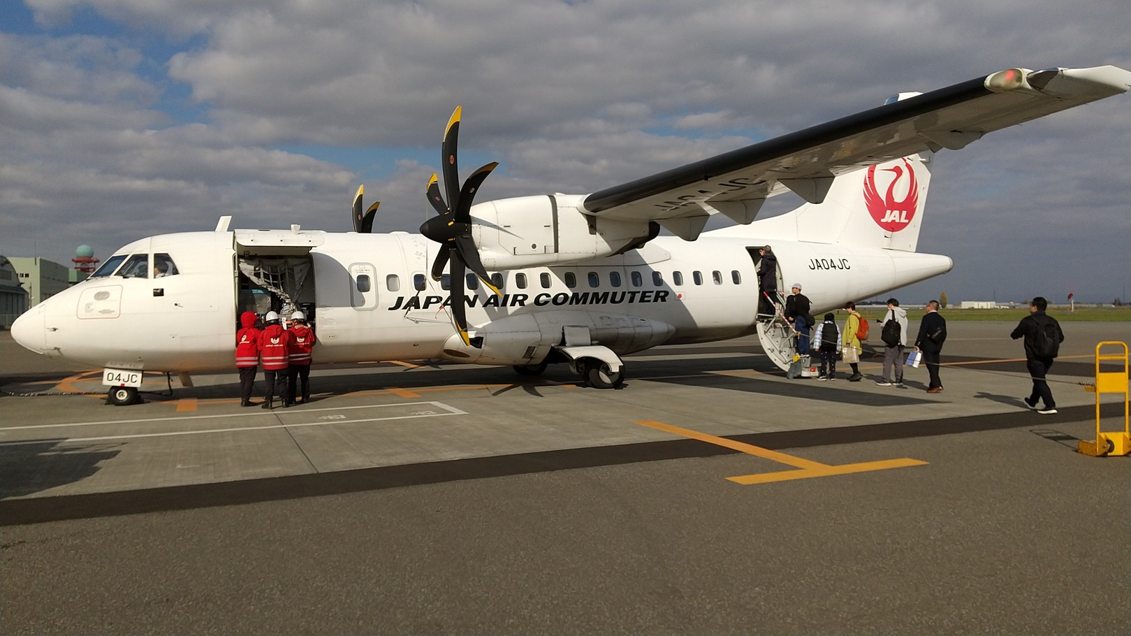 丘珠では一旦地面に降りて歩いて飛行機に移動します。