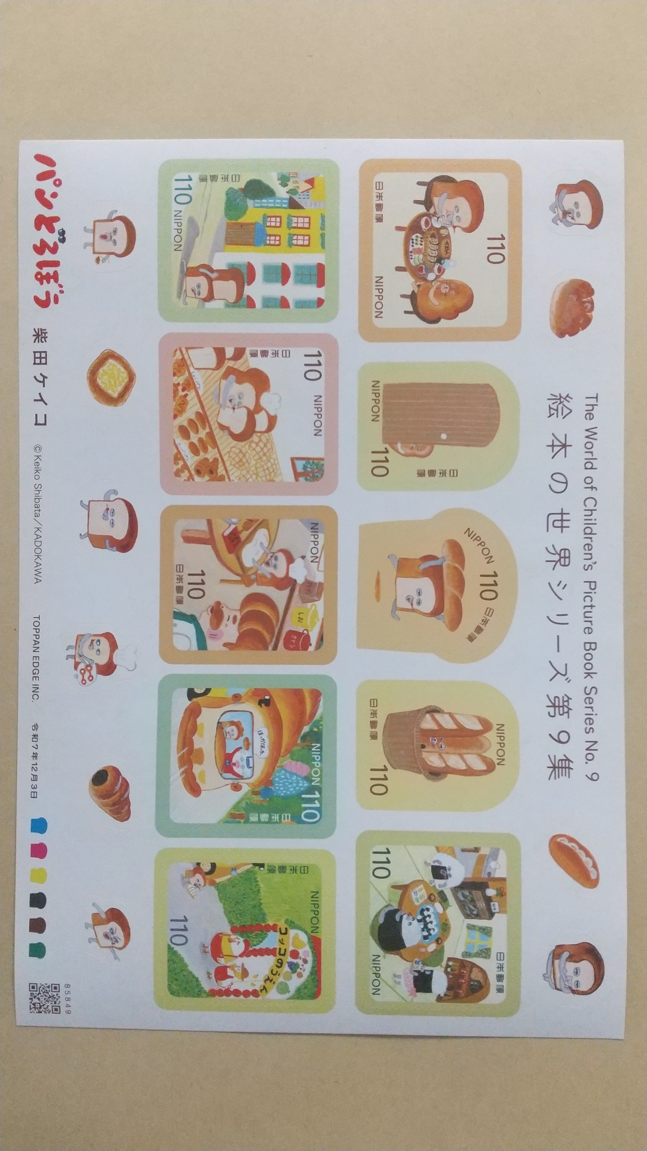 今回は「パンどろぼう」の切手が手に入りました(と言っても買いに行ったときに売っていただけですが)。